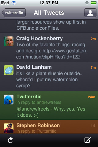 One of the best apps on iphone for Twitter for with a version of the IPAD, as well as Twitterific comes with a number of striking features that include the ability to facilitate the process of managing one or more Twitter accounts, conversations flow, follow friends easily, and even re-tweet, shorten links and translate all the tweets from Twitterific interface fashion. Other program features include: