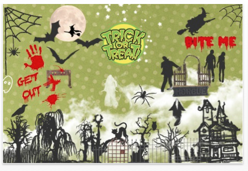Photo Effects-Halloween adds Halloween related photos and artwork to your photograph projects. Artwork categories include backgrounds, bones, borders, cemetery, creatures, hair, hats, masks, objects, pumpkins, scenery, signs, silhouettes, and more.