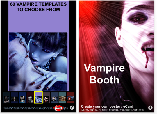 Create your own vampire poster/e-cards! Pick from 60 vampire templates and insert your picture from library (iPhone/iPod/iPad) or camera (iPhone only). It’s that simple! Handwrite your own message on the poster/e-card you created. Save and email to your friends and family!