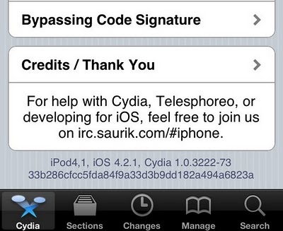 STEP 2: Download Cydia.patch file for iOS 4.2.1 and copy it to /Applications/Cydia.app/Cydia_ by SSH’ing into your iOS device.