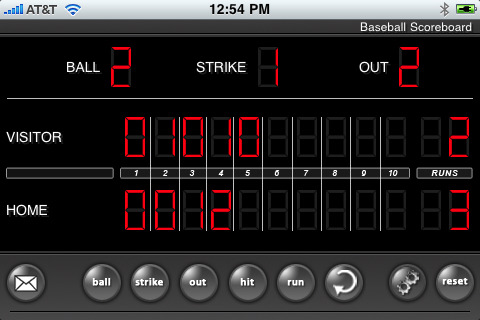 Baseball Scoreboard is great for keeping game score at Little League, school games, YMCA game or anywhere you need it. Baseball Scoreboard is equipped with the features you need wrapped into a simple to use interface which allows for easy control of the scoreboard. In addition, once you are done keeping score you can email out a game summary or save it to your email drafts folder. Watch out for other great CJK Software Scoreboard Applications.